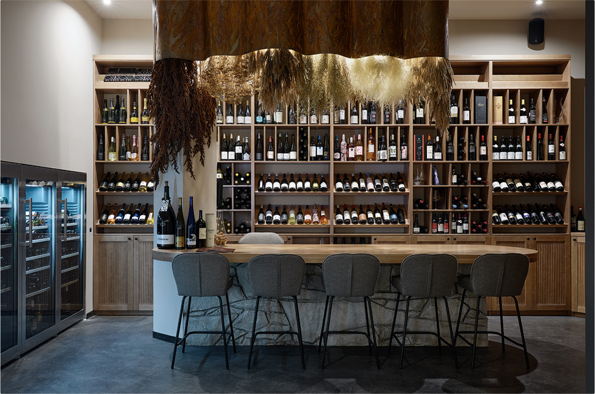 Мы предложили концепцию «Земля/воздух/корни». Ее реализацию можно проследить в природных цветах, преобладании натуральных охристых оттенков, тактильных материалах, имитации каменных скал и осенних лугов, объёме помещения и разнообразии света. Единая концептуальная деталь — волна - это ассоциации с занавесом, барханами, морскими волнами. Она берет начало от входа в ресторан и провожает гостя через застывшую драпировку стен холла в дегустационный зал и бар заведения.